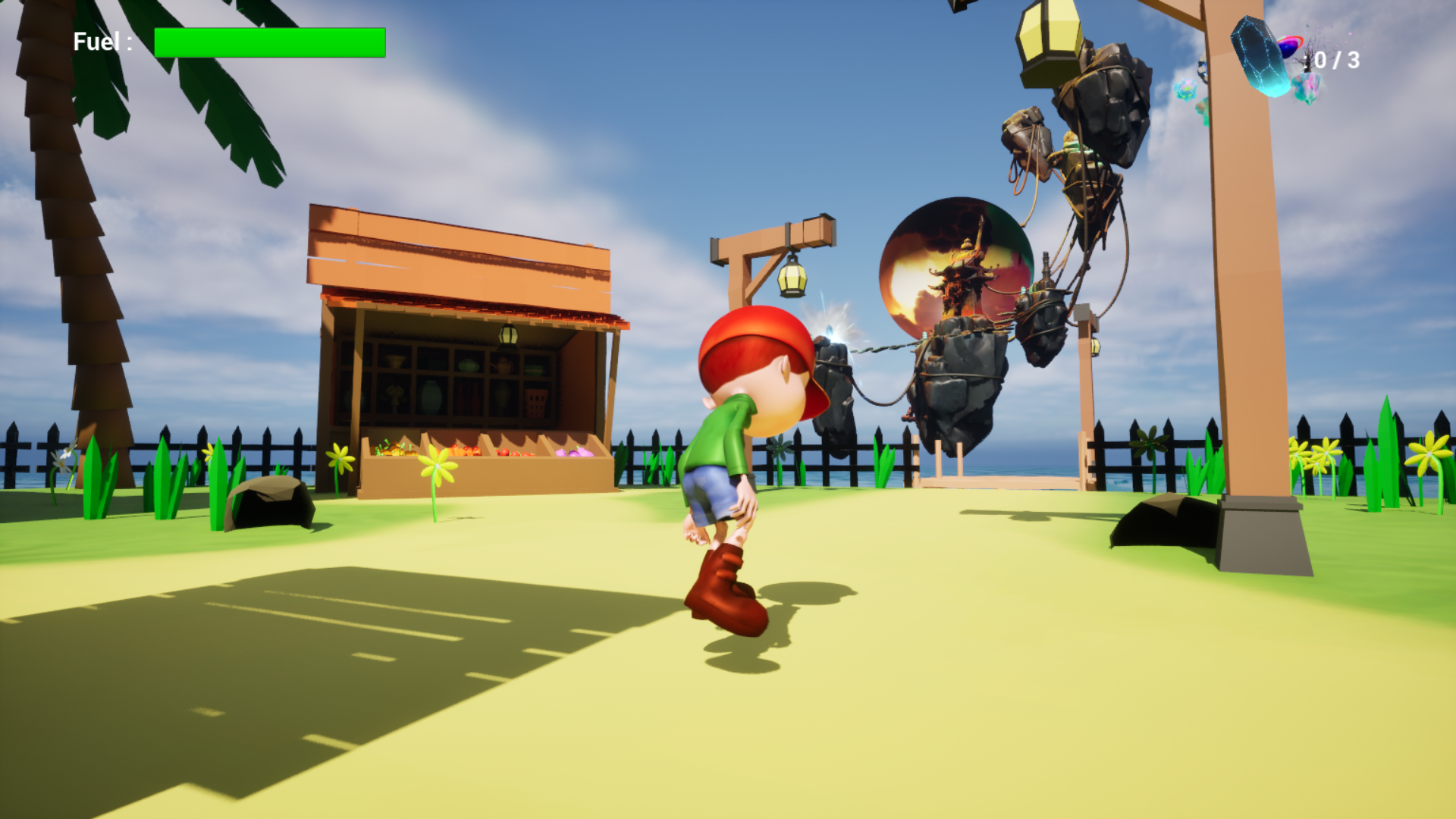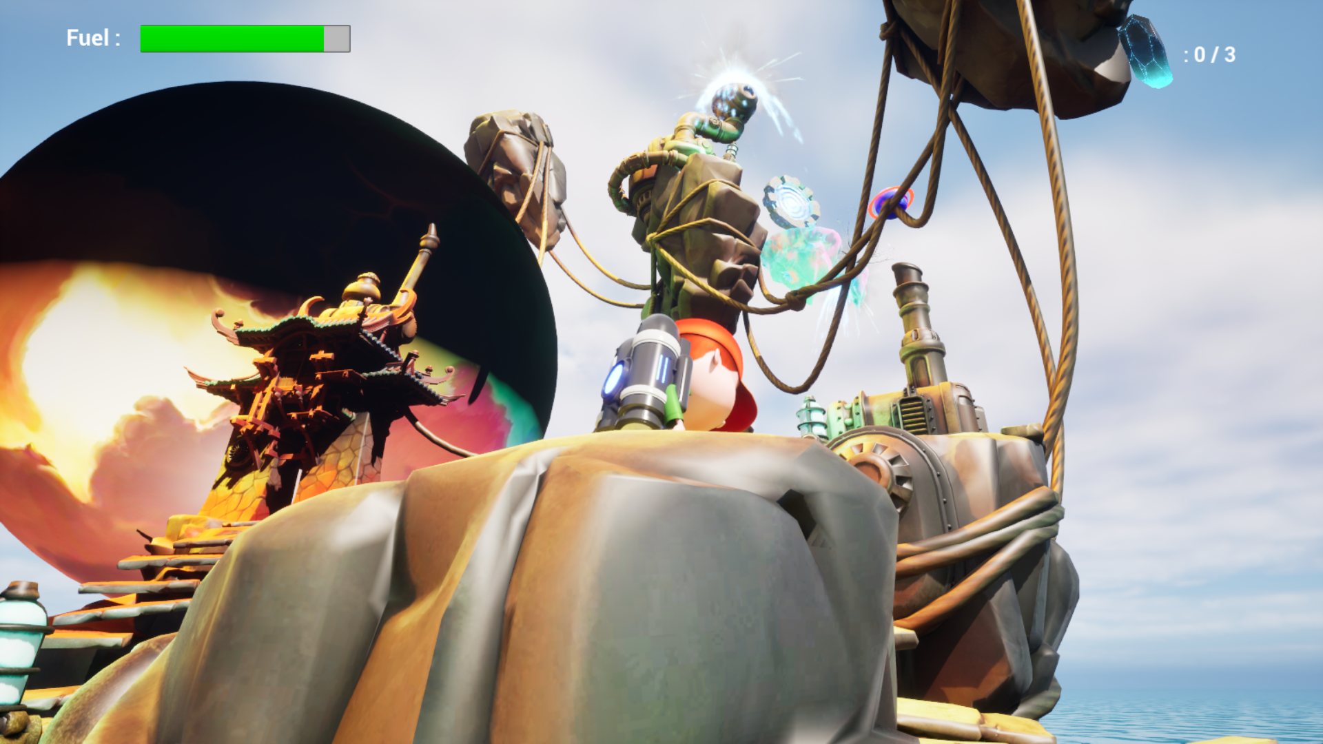 Once equipped with the jetpack, your objective shifts to collecting magical crystals scattered across the grounded and floating islands. These crystals are essential to activate the final portal that grants you victory. You'll use your jetpack's limited fuel to navigate vertical challenges, reach hard-to-access platforms, and soar between floating islands suspended in the sky.